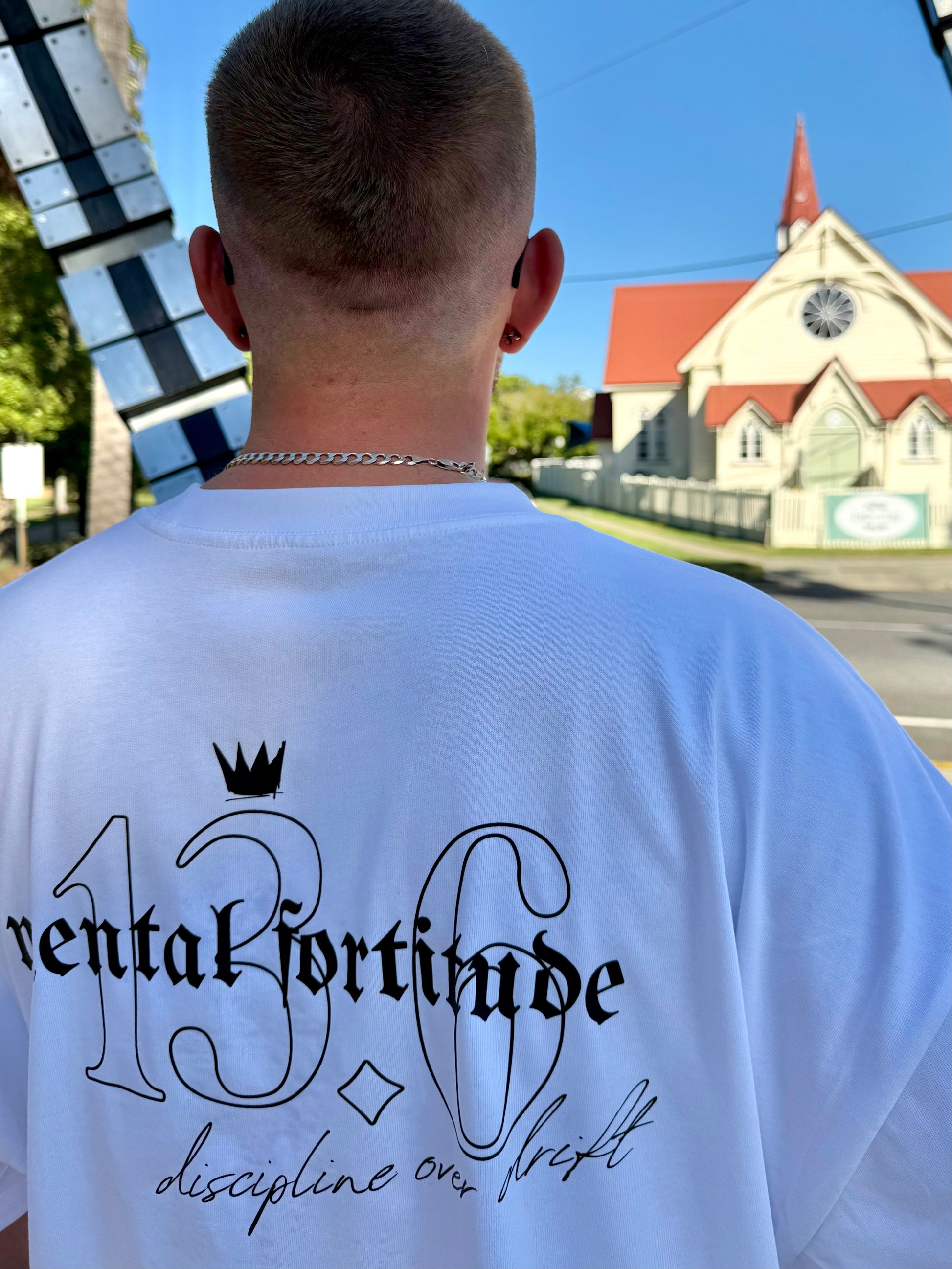 Heavyweight premium cotton tee with a structured yet comfortable fit, substantial hand feel, durable construction, reinforced seams and classic crew neckline, designed for longevity, repeat wear, and daily discipline.